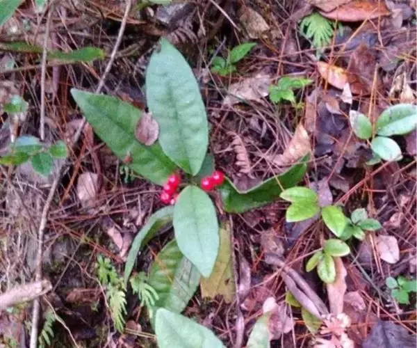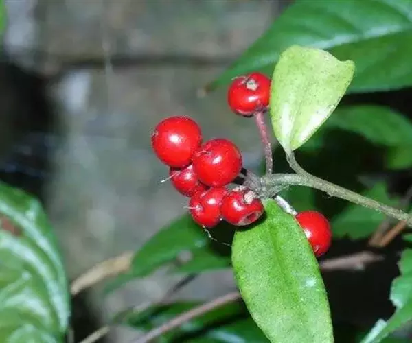 出自《本草图经》:百两金,叶似荔枝,初生背面俱青,结花实后,背紫面青。苗高二、三尺,有干如木,…