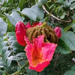 火烧花 Kurz)是紫葳科火烧花属常绿乔木;树皮光滑;叶为奇数羽状复叶对生,小叶卵形或卵状披针形,…