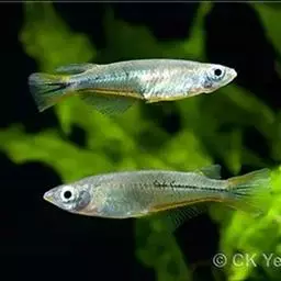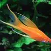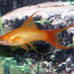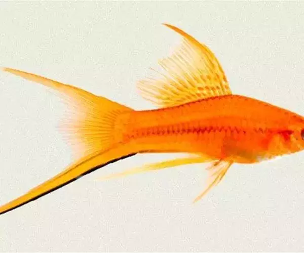 剑尾鱼属花鳉科剑尾鱼属的一种热带鱼。产于墨西哥、危地马拉等地的江河流域。性情温和,很活泼,可与小型鱼混养。雄鱼尾鳍下叶有一呈长剑状的延伸突。与新月鱼(Platy)近缘,广泛用于遗传及医学研究。剑尾鱼原为绿色,体侧各具一红色条纹,但已培育出许多花色品种。