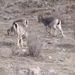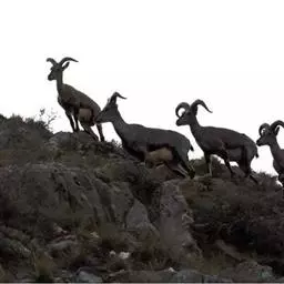在甘肃最西部阿克塞地区的考察中见到至少129头,估计该地区总数为150头,其中成年的至少67头,认为该种群是健康的,并认为每年开展国际狩猎2-3头将不致危害种群的繁殖。又称阿尔金山地区2天考察,见至少116头,除6头亚成体外,其余均为母子群。