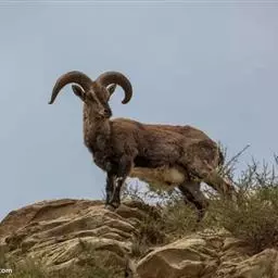 盘羊 盘羊躯体粗壮,体长1.2-2米,肩高90-120厘米,体重65-185千克,肩高等于或低于臀高。头大颈粗,尾短小。四肢粗短,蹄的前面特别陡直,适于攀爬于岩石间。有眶下腺及蹄腺。乳头1对,位于鼠鼷部。通体被毛粗而短,唯颈部披毛较长。体色一般为褐灰色或污灰色,脸面、肩胛,前背呈浅灰棕色,耳内白色部浅黄色,胸、腹部,四肢内侧和下部及臀部均呈污白色。前肢前面毛色深暗于其他各处,尾背色调与体背相同,雌羊的毛色比雄羊的深暗。