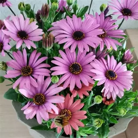 蓝目菊别名非洲雏菊、大花蓝目菊。原产南非,不耐寒.忌炎热,适宜温度18℃~26℃,喜向阳环境。…