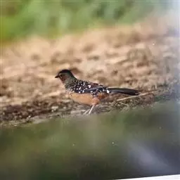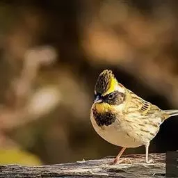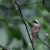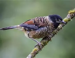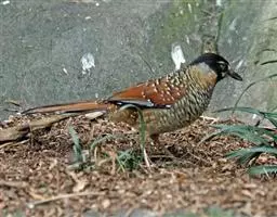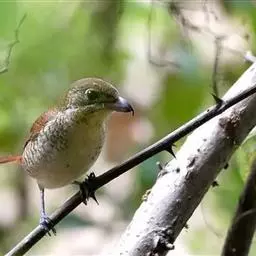 雌鸟头顶颜色与雄体相似,贯眼纹为栗褐色不完整,仅限于眼后。眼先灰白色。背、腰棕褐色。下体密布黑褐色鳞纹。