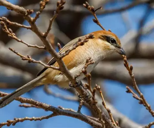 牛头伯劳(学名:Lanius bucephalus Temminck et Schlegel),又称“红头伯劳”,是伯劳科、伯劳属下的一种鸟类。牛头伯劳全长可达220毫米。喙强健具钩和齿,头顶及枕部栗红;背羽灰褐色;尾羽褐色;黑色贯眼纹明显,尾羽褐色;下体羽棕白,两胁深棕色。牛头伯劳主要栖息于低山、丘陵和平原地带的疏林和林缘灌丛草地,性活跃,鸣声粗厉洪亮,主要以昆虫为食。