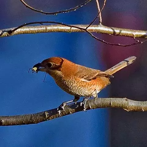 牛头伯劳主要以昆虫为食,如甲虫、蟋蟀等。