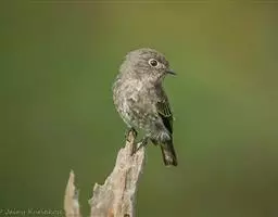 雌鸟上体灰褐色沾绿或橄榄褐色,头顶和后颈缀有灰色,腰、尾上覆羽、尾下覆羽和尾橙栗棕色,中央尾羽较外侧尾羽暗而褐,飞羽褐色无翼斑。下体浅灰棕色,下胸、两胁和尾下覆羽赭黄色,腹中部近白色。眼周有一圈白色。