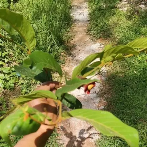 华南植物园繁育中心种植着一种花艳果奇的植物—大花紫玉盘(Uvaria grandiflora Roxb.)。该植物又名山椒子、川血乌、红肉梨,为番荔枝科攀援灌木。