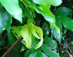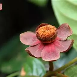 大花紫玉盘(Uvaria grandifloraRoxb.)就是一种典型能用叶、花、果实等感知外界气温变化的奇花异果植物。这种植物分布在中国广东中南部、广西东南部、南亚、东南亚等一些国家热带、亚热带地区。其性状为灌木状藤本,开花时,花瓣6片,呈内外两轮排列,紫红色至深红色,花大艳丽,有香味。果实聚合生于一个果柄上,单果多达20数以上。幼果至熟果颜色从绿色—灰褐色—橙黄色渐变。