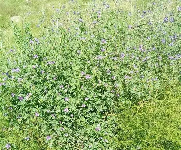 从第一朵花出现至全株十分之一开花时期,草中营养最丰富,茎叶产量高且易消化,为收割最佳时期,年收 割4~6茬。紫花苜蓿刈割留茬高度4~5厘米,最后一次收割应距初霜一个月,过迟不利于植株根部和根茎部营养物质积累。