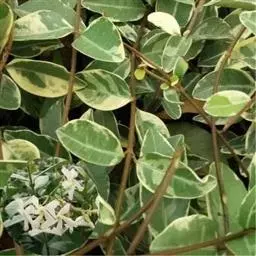 五彩络石为常绿蔓性藤本植物。匍匐生长,茎具白色乳汁,叶对生,革质,卵形,长3厘米,宽2厘米。喜阳耐…