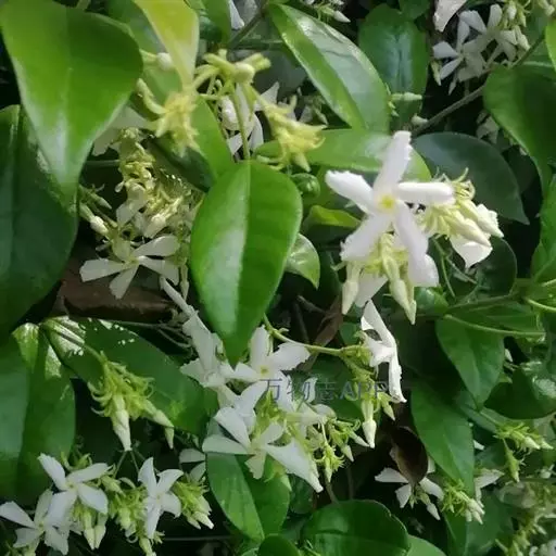 万字茉莉 络石的繁殖,首选方法是压条,特别是在梅雨季节其嫩茎极易长气根,利用这一特性,将其嫩茎采用连续压条法,秋季从中间剪断,可获得大量的幼苗。或是于梅雨季节,剪取长有气根的嫩茎,插入素土中,置半阴处,成活率很高,但老茎扦插成活率低。盆栽络石花后一般不结籽,地栽络石花后可结圆柱状的果,1 0月成熟收取后,翌春播种,但播种苗要三四年后才开花,而压条、扦插苗翌年便可开花,故一般不用播种法。