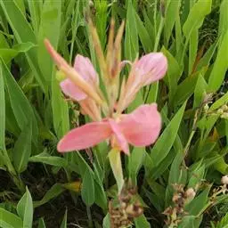粉美人蕉:是一种球根草本植物。根茎延长,株高1.5-2米;茎绿色。叶片披针形;总状花序疏花,单生或…