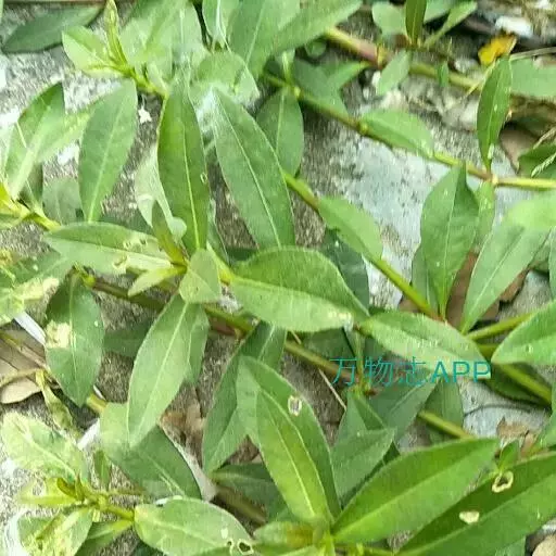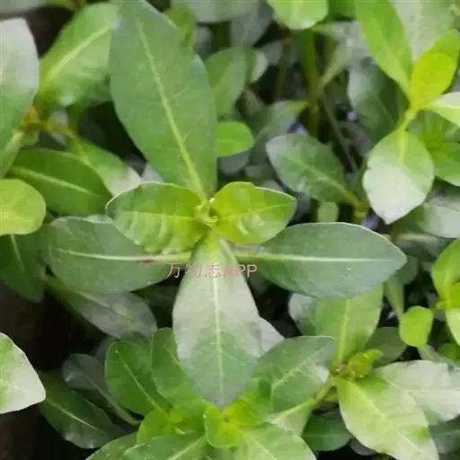 喜旱莲子草 多年生草本;茎基部匍匐,上部上升,管状,不明显4棱,长55-120厘米,具分枝,幼茎及叶腋有白色或锈色柔毛,茎老时无毛,仅在两侧纵沟内保留。叶片矩圆形、矩圆状倒卵形或倒卵状披针形,长2.5-5厘米,宽7-20毫米,顶端急尖或圆钝,具短尖,基部渐狭,全缘,两面无毛或上面有贴生毛及缘毛,下面有颗粒状突起;叶柄长3-10毫米,无毛或微有柔毛。