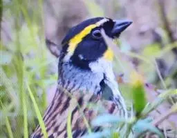 黄眉鹀是雀形目鹀科鹀属鸟类,体型中等偏小。雄鸟头部主要为黑色,冠纹白色,眉纹前段黄色而后段白色,…