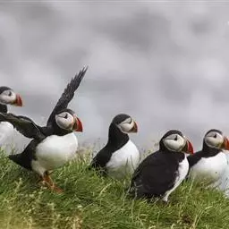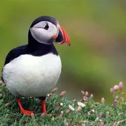 北极海鹦是海雀科的一种海鸟,体长26-38厘米,体重约490克。冠为黑色,脸颊灰色,腹部白色。喙大…