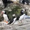 第一批繁殖者到达后,非繁殖者和未成年者3-4周后到达。一些凤头海雀在繁殖季节后期参与额外的配对交配,以此来评估未来可能伴侣的繁殖成功率。雄性在求偶过程中,通过攻击性地扰乱配对,试图在其集结地进行额外的配对交配。它们冲进来,试图扰乱即将与其他雄性交配的雌性。尚未成年和尚未繁殖的鸟类将优先寻找合适的巢址。准备好繁殖并形成配对的成年海雀通过利用海洋作为它们的集结地来展示它们的求爱准备。这个“集结区”是雄性鸟类用来表演求偶表演的海洋区域。这一表现有助于它们吸引一个能与之形成配对关系的伴侣,并有望与它交配。一些没有繁殖的个体可能在繁殖季节结束时与额外的一对小海雀进行求爱活动,此时雏鸟正在孵化或在雏鸟的喂养阶段。一旦一对繁殖的凤头海雀在产卵前重新形成,雄海雀就会主动保护雌海雀并跟随它。