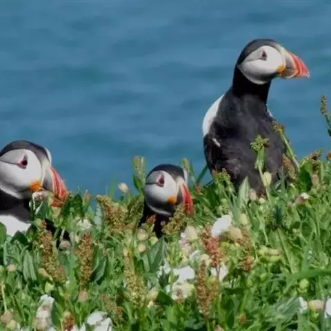 角海鹦:是鸻形目海雀科的鸟类,体重581-648克,体长约32厘米,翼展18-20厘米。是一种身体…