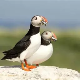 角嘴海雀,是海雀科、角嘴海雀属的中型海鸟,体长32-41厘米,嘴短而粗呈圆锥状、橙色。夏羽上嘴基部…