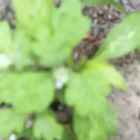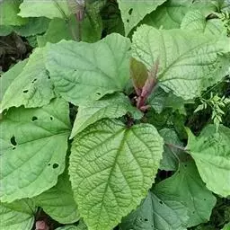 叶卵形,长2-5厘米,宽1.5-3.2厘米,先端钝或急尖,基部阔楔形至几圆形,边缘具疏圆齿状牙齿,上面榄绿色,下面略淡,两面被糙硬毛,尤其是下面脉上,侧脉约5对,与中脉在上面微下陷下面明显隆起。