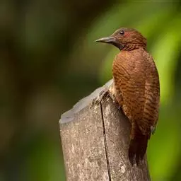栗啄木鸟:是一种红褐色啄木鸟,体长21厘米。雄性成鸟整个头棕色,…