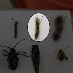 2、幼虫期调查方法 幼虫期调查相对较为困难,应在踏查的基础上,设立固定标准地与临时标准地进行调查。标准地内选设20株标准株,采用振落法将幼虫从树上振落,然后统计幼虫数量。另外也可在树干周围铺上塑料布收集树上幼虫一昼夜虫粪数量并称重,推算出幼虫数,因为舞毒蛾幼虫随不同龄期其粪粒数量和大小有规律地变化。因此可以利用虫粪法推算树上幼虫的虫口密度。因为树冠对虫粪有一定的截留量,截留率约为2.7%。在应用虫粪法推算幼虫数量时,应注意区别不同虫种的粪粒,这就需要在饲养的过程中注意观察各龄幼虫粪粒的平均长、宽及一昼夜粪粒数,并称重。