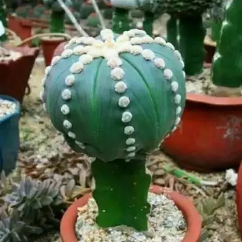 ·植株扁圆形至球形,后成圆柱状,球径30~35cm,高度可达2.5米,直径1米。