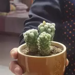 江守玉为仙人掌科强刺球属,植株扁圆形至球形,后成圆柱状,体色灰绿,刺座上附生白色绒毛,花橙黄色,漏斗状。本品种适合露地或盆栽观赏。