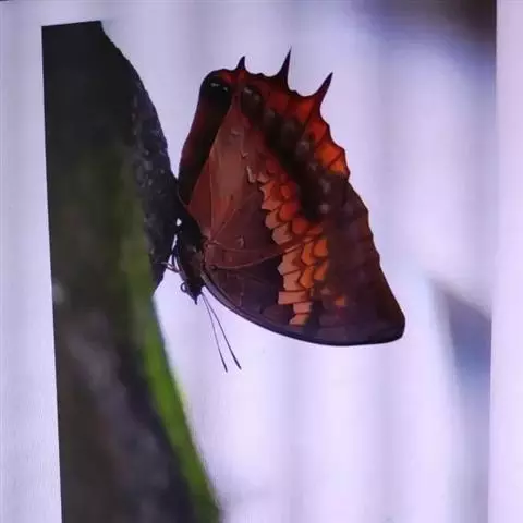 黄带枯叶蝶 蛹 成虫出现于春至秋季,生活在南部、东部的低海拔山区。喜好访花吸蜜。