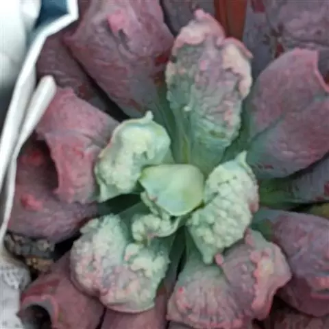 绿爪多肉(Echeveria cuspidata var.zaragozae)为景天科拟石莲花属肉质草本植物,作为小型多肉盆栽观赏植物深受人们欢迎,株高通常15厘米以内,叶排列呈莲座状,中央附近叶片近直立,叶披针形,被白粉,先端渐尖、急尖,叶片外观淡蓝绿色,在阳光充足、温差适宜的环境中,叶片粉红色带紫,叶尖深紫红色。