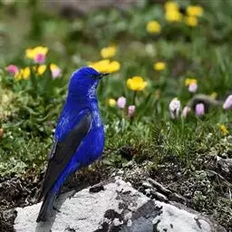 蓝大翅鸲是鹟科、大翅鸲属小型鸟类,体长19-21厘米。两翅尖长。雄鸟通体鲜紫蓝色具金属光泽。…