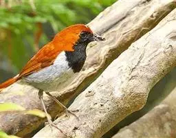 栗腹歌鸲是鹟科、歌鸲属小型鸟类,体长12-14厘米。雄鸟前额和头侧黑色,…