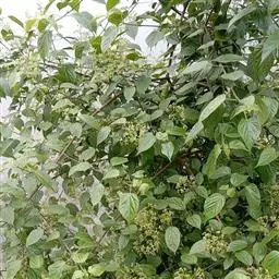皱叶荚蒾是五福花科荚蒾属的小乔木植物。植株高达4米;叶柄及花序均被由黄白色、黄褐色或红褐色簇状毛组成的厚绒毛;小枝粗壮,稍有棱角;叶革质,卵状矩圆形至卵状披针形;聚伞花序稠密,总花梗粗,四角状,花冠呈现白色,雄蕊高出花冠;果实红色,后变黑色,宽椭圆形,无毛;花期为4-5月;果熟期为9-10月。皱叶荚蒾原产于中国,分布于陕西、湖北、四川及贵州等地。生长于山坡林下或灌丛中,海拔800-2400米。其性喜好阳光,耐半阴,喜温暖,有一定的耐寒性,喜湿润,不耐涝,耐中度盐碱,但在深厚肥沃、排水良好的中性或微酸性沙质土壤中生长更好,耐修剪,生长缓慢。其一般的繁殖方式为播种和扦插繁殖。皱叶荚蒾味苦,性凉。具有清热解毒、凉血止血的功效。可用于湿热痢疾、痈疽疮疖、咳血、吐血、便血、跌打损伤等疾病。皱叶荚蒾给人以郁郁葱葱的景象,全年观叶、春季观花
