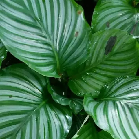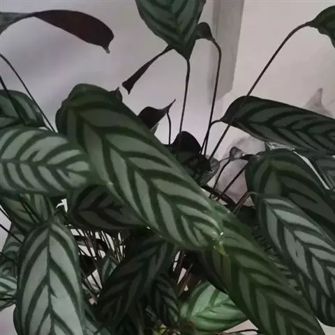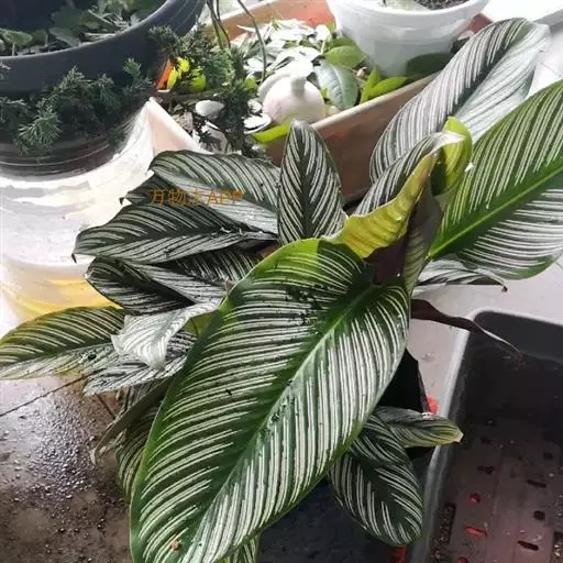 双线竹芋 每年的3-10月是竹芋的生长旺季,最适宜其生长的空气相对湿度在75%-85%,高的空气湿度有利于叶片展开。尤其是新叶抽出期间,若过于干燥,则新叶之叶缘、叶尖均易枯卷,日后变成畸形。叶片萎蔫后无法恢复。因此在生长季节需勤浇水,并经常向叶面喷雾,夏季每天浇3-4次,且要及时,最佳浇水方法是早上喷洒叶面,中午或下午浇土面,晚上全株浇灌,但要注意土壤不要过黏、过湿,否则易烂根并引起病害。进入秋、冬季后,竹芋的生长减慢,浇水量要逐步减少,可根据天气变化决定每天浇水1次或2-3天浇水1次,尤其是气温较低时,应保持土壤干燥,使之免受寒害。