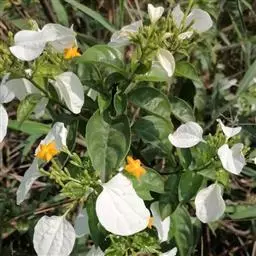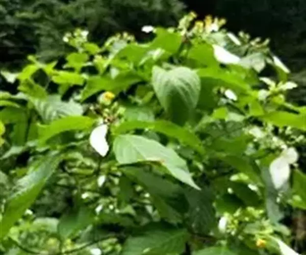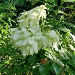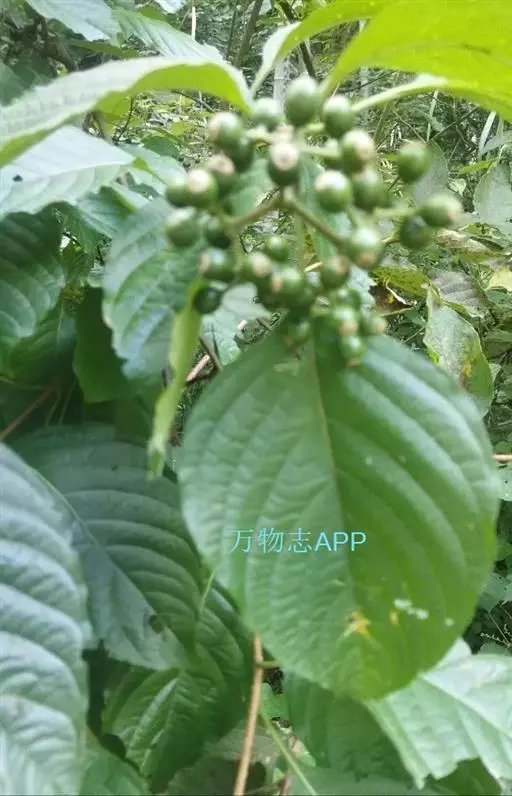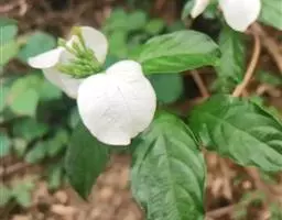 大叶白纸扇:又名白扇宝心。直立或藤状灌木,高1.3-2m。小枝圆形,被柔毛。叶对生;叶柄长1-3.5cm,有毛;托叶卵状披针形,长8-10mm,先端常2裂;叶片宽卵形或宽椭圆形,长10-25cm,宽5-12cm,先端近突渐尖,基部楔形,两面脉上被疏柔毛,侧脉约9对,叶膜质或薄纸质。聚伞花序顶生;苞片托叶状,长约8mm;花5数,具梗;萼筒陀螺状,长约4mm,裂片披针形,长达1cm,宽2-2.5mm,外被短柔毛,其中一片扩大成叶状,倒卵形,长3-4cm,宽1.5-2cm,白色;花冠黄色,长约1.4cm,裂片卵形,长约2mm,里面有污黄色粉末状绒毛;雄蕊着生于花冠筒中部;子房下位,2室,柱头压扁状,2裂。浆果近球形,直径约1cm。花期6月,果期9月。