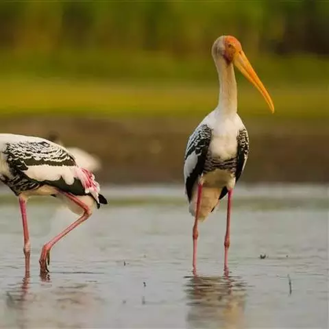 彩鹳:鹳科、鹮鹳属的鸟类。体长93-102厘米,体重2-3.5千克。橙黄色的嘴粗而长,…