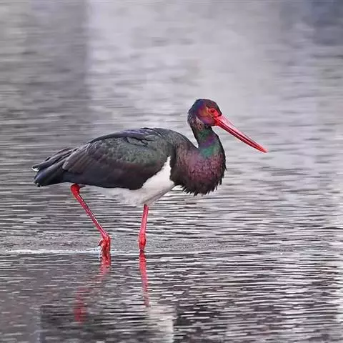 黑鹳是鹳形目鹳科鹳属鸟类,俗称乌鹳、钢鹳、老鹤。黑鹳头、颈和脊均呈黑褐色,故名黑鹳。…