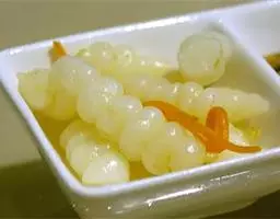 糖蒜由蒜制成,颜色为白色或浅褐色,呈半透明状,口感酸甜嫩爽,为酱菜中上品。糖蒜是一款美味菜谱,主要原料有大蒜、食盐、红糖、醋等,这道菜具有预防流感、防止伤口感染、治疗感染性疾病和驱虫的功效。