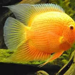 金菠萝鱼,Cichlasoma severum,慈鲷科丽体鱼属。成鱼体长20~25cm,厚侧扁形,…