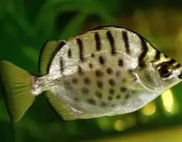 马夫鱼。成鱼体甚侧扁,背缘高而隆起,略呈三角形。背鳍鳍棘11根,第四鳍棘延长呈鞭状,鳍膜亦随之延长…