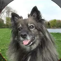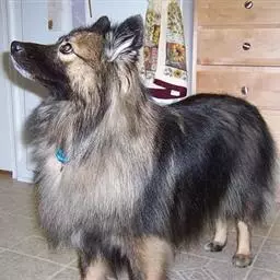 荷兰毛狮犬耳朵小,呈三角形,在头部较高的位置,且竖立;口吻中等长度,既不粗糙也不尖细,…