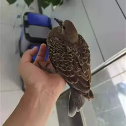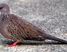 棕斑鸠,是鸽形目鸠鸽科斑鸠属鸟类。整个头和颈淡粉红色,头顶和前额较暗,颊、喉较淡,…
