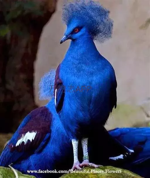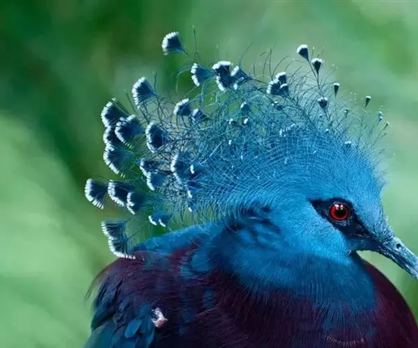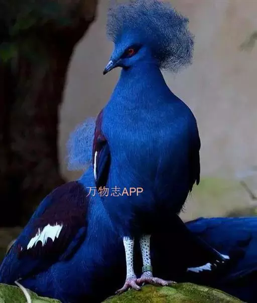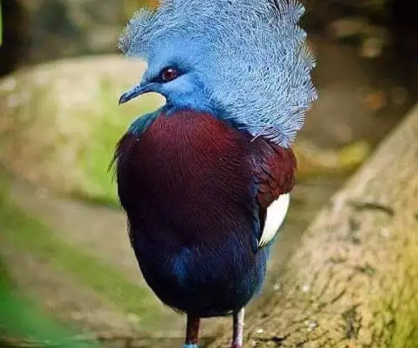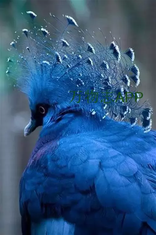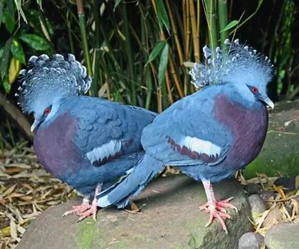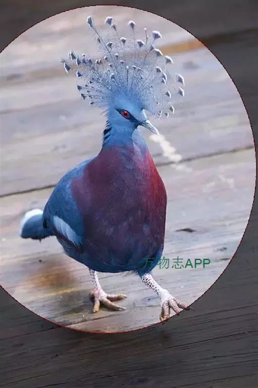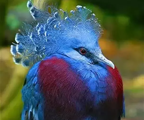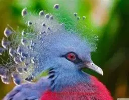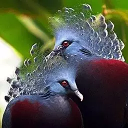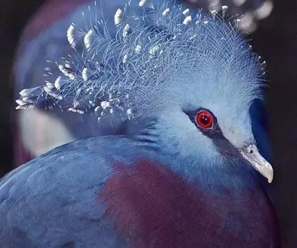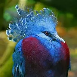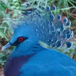 蓝凤冠鸠(学名:Goura cristata)是鸠鸽类中最漂亮的成员,也是鸽鸠类中体型最大的一种,几乎和火鸡一般大。蓝凤冠鸠通体呈蓝色,羽毛光滑而整洁,在尾部和翅下分别有一块白色区域,翅膀中部部分至前胸略呈紫色,红色的眼睛炯炯有神,眼睛周围的羽毛颜色较深,腿部还长有小斑点。