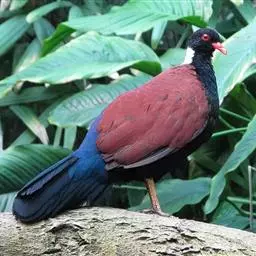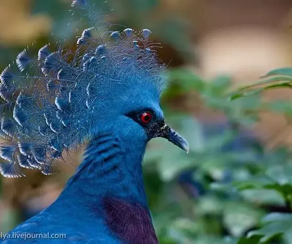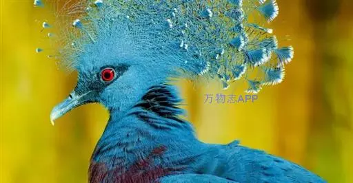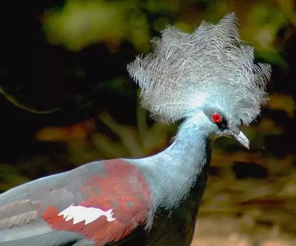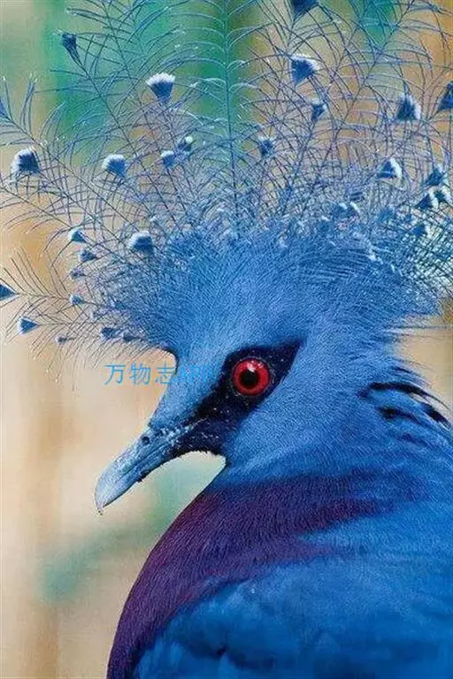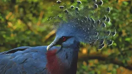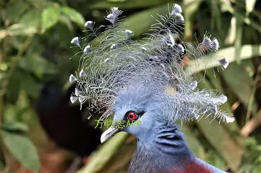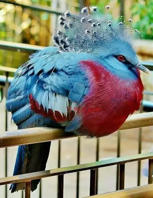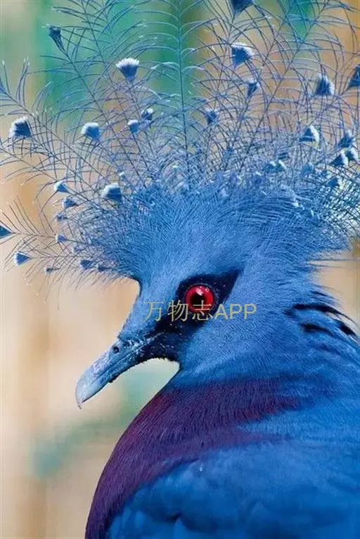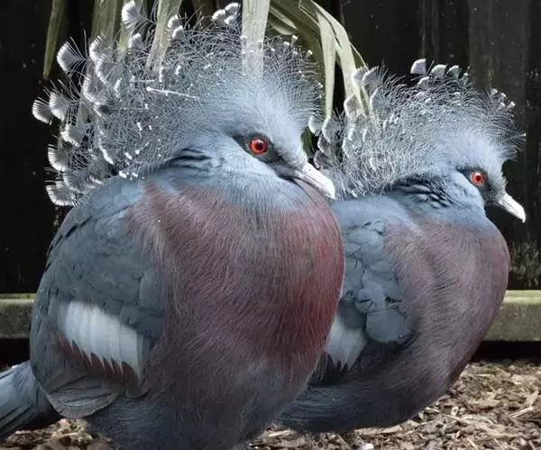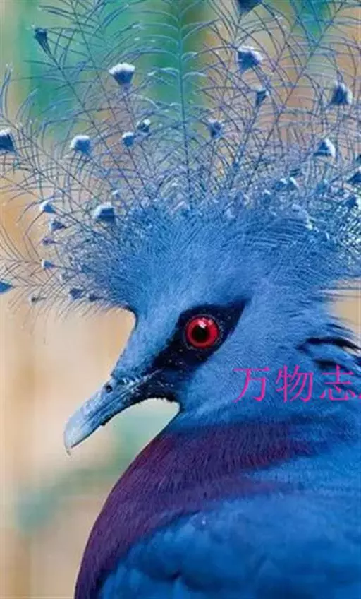 蓝凤冠鸠(学名:Goura cristata)是鸠鸽类中最漂亮的成员,也是鸽鸠类中体型最大的一种,几乎和火鸡一般大。蓝凤冠鸠通体呈蓝色,羽毛光滑而整洁,在尾部和翅下分别有一块白色区域,翅膀中部部分至前胸略呈紫色,红色的眼睛炯炯有神,眼睛周围的羽毛颜色较深,腿部还长有小斑点。