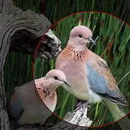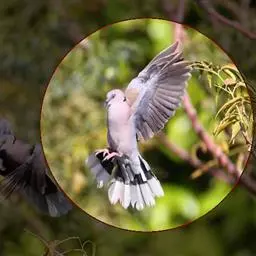 山斑鸠,是鸽形目鸽鸠科斑鸠属鸟类,又名金背斑鸠、棕背斑鸠、山鸠、金背鸠、麒麟斑、麒麟鸠、东方斑鸠、绿斑鸠、山鸽子。山斑鸠颈侧具明显黑白色条纹的块状斑,上体深褐色、具扇贝状斑纹,羽缘棕色,尾羽近黑色,下体多偏粉色。虹膜黄色,喙灰色,脚粉色。山斑鸠是留鸟,在中国常见且分布广泛。此外,还分布于不丹、尼泊尔、巴基斯坦、印度、日本等国。栖息于针阔混交林、季风常绿阔叶林、果园及农耕区,多成对活动于开阔农耕区、村舍、寺院周围及防火林带。取食于地面,主要觅食植物种子、果实、嫩芽等,也吃昆虫。山斑鸠飞翔时鼓翼快速,叫声为反复而低沉的“咕咕咕”声。繁殖期在4-7月,营巢于林中树上,通常一年繁殖2窝,窝卵数2枚,由雌雄亲鸟轮流孵卵,孵化期18~19天。山斑鸠的肉、卵可食,肉入药可益气明目、强筋壮骨,治久病气虚、衰弱无力、两目昏暗等病症。山斑鸠啄食杂草种子,对农田清除杂草有益;但有时也刨食农作物及树的种子。山斑鸠