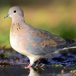 欧斑鸠体长27厘米,是一种体型略小的粉褐色斑鸠。颈侧具多黑白色细纹的斑块,翼覆羽深褐,…