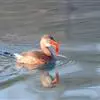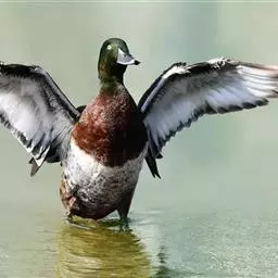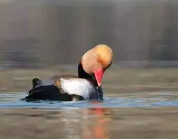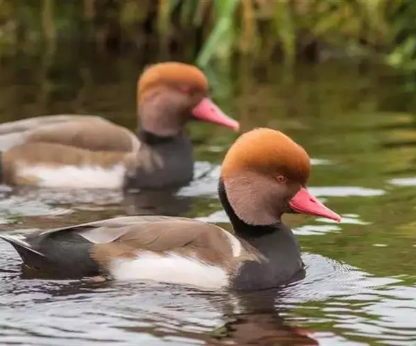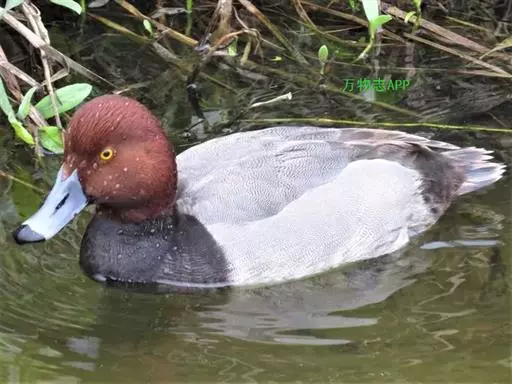 红头潜鸭(学名:Aythya ferina)体长42-49厘米,翼展72-82厘米,体重700-1100克,寿命10年。雄鸭头顶呈红褐色,圆形,胸部和肩部黑色,其他部分大都为淡棕色,翼镜大部呈白色。雌体大都呈淡棕色,翼灰色,腹部灰白。幼年雄鸭下部羽色较深,与雌体颇相似。雄体覆羽与雌性同,但头和颈部的红色比较浅些。眼鲜红色或红棕色;喙蓝黑色;脚青灰色或铅灰色;蹼关节和爪黑色。很少鸣叫,为深水鸟类,善于收拢翅膀潜水。杂食性,主要以水生植物和鱼虾贝壳类为食。有很好的潜水技能,在沿海或较大的湖泊越冬。繁殖于英国、斯堪的那维亚半岛南部、欧洲西伯利亚南部、蒙古和中国。越冬在欧洲南部、非洲北部、伊朗、阿富汗、巴基斯坦、印度、孟加拉国、缅甸、中南半岛、中国和日本等国家。