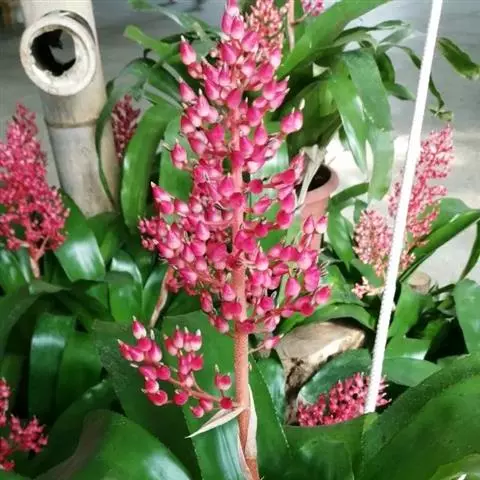 美叶光萼荷是凤梨科光萼荷属的多年生附生常绿草本植物。叶基生,莲座状叶丛基部围成筒状,…