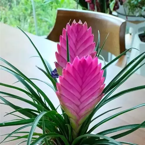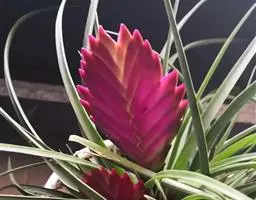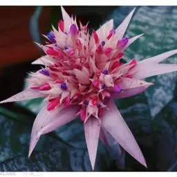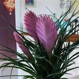紫花凤梨,是凤梨科铁兰属的多年生草本植物。株高不及30厘米;叶片拱状线形,叶丛族生于短缩茎上,…