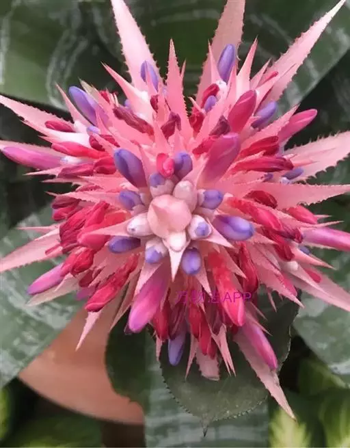 珊瑚凤梨凤梨科多年生附生草本,也可陆生。叶狭长,叶缘光滑或带刺,叶片莲座状丛生。叶面常有诱人的斑点…