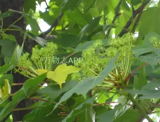 毛叶刺楸(变种)Kalopanax septemlobus(Thunb.)Koidz. var. magnificus(Zabel)Hand.-Mazz.该变种和原变种的区别在于枝上的刺较少,或无刺,叶片较大较宽,长18-30厘米,宽20-40厘米,裂片卵形,下面密生短柔毛,脉上更密。